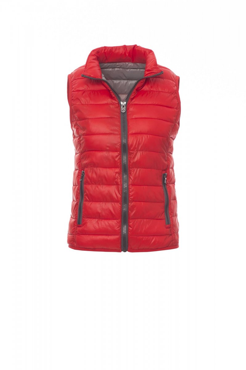 MELLÉNYEK_IMBOTTITO SENZA MANICHE, PIUMINO SYNTH_Tömörítetlen szállal (160 g/m²) bélelt női mellény, 8 mm-es műanyag cipzár fém cipzárkocsival. A derékon keskeny szegély. Két külső cipzáras zseb. Három belső zseb.