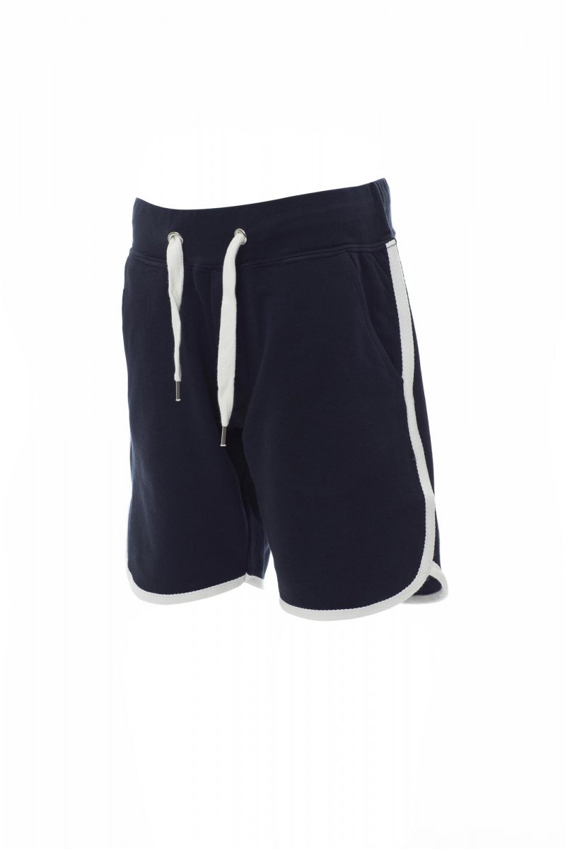 BERMUDA RÖVIDNADRÁG_SPORTRUHÁZAT_Bermuda kialakítású, rövidszárú melegítőnadrág gyermekeknek sztreccsanyaggal a derékrészen és állítózsinórral, cipzáras slicc, két elülső zseb és kontrasztos színű díszítés.