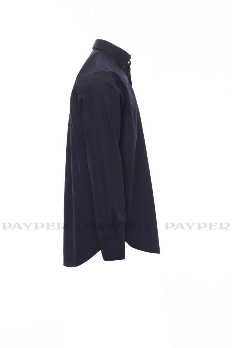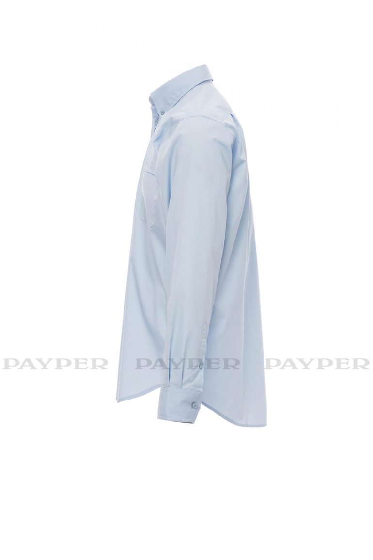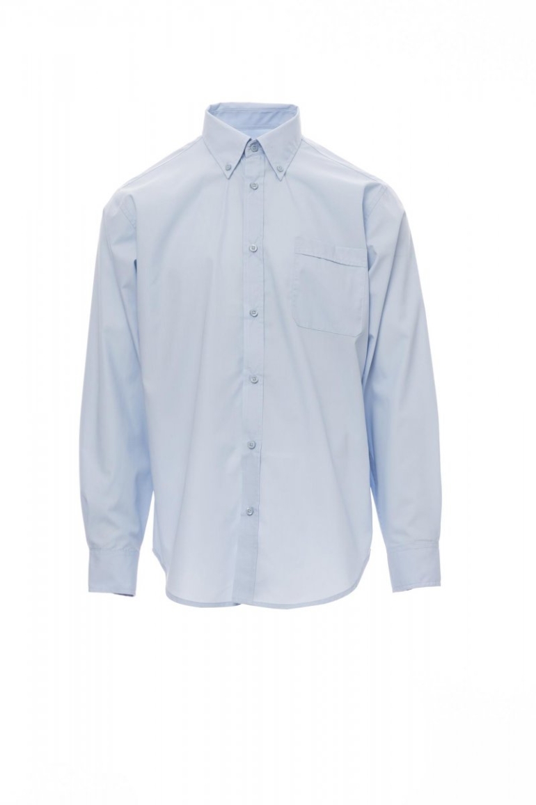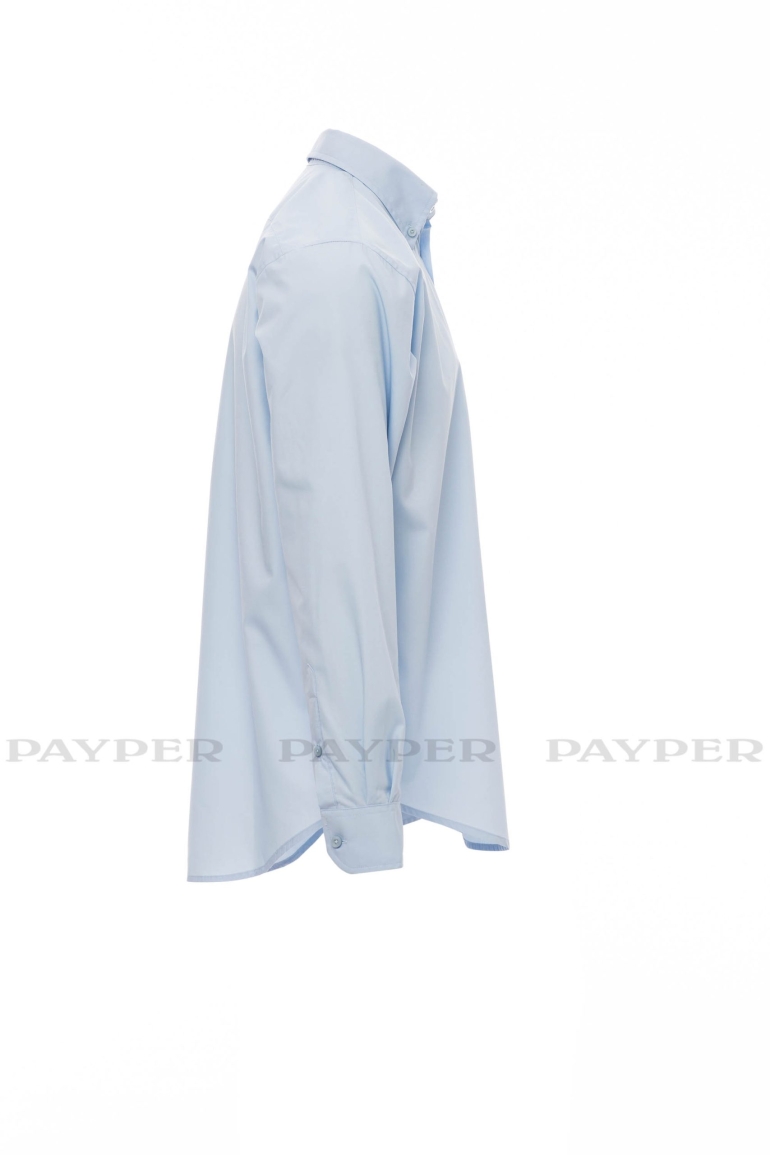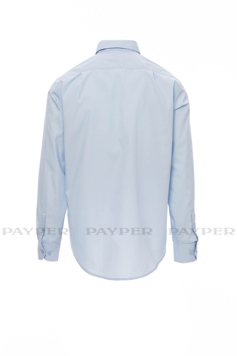 Fésült pamutból készült, finom szövésű férfi ing, legombolható gallér, kerekített mandzsetta 2 gombbal és gomblyukkal, varrott nyakrész gyöngyházhatású gombokkal, egy zseb a mellkason. Bevarrással.