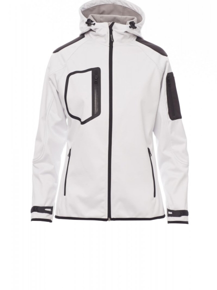 SOFTSHELL DZSEKIK_KAPUCNIS BÉLELETLEN_WP 8000 mm H₂O, WVT 5000 g/m² 24h. 3 rétegű férfi softshell raglán szabású ujjal, megerősítő bevonatos SBS cipzárral. Formázott kapucni két varrással, állítható húzózsinórral és zsinórszabályozóval. Gumírozott csuklószorítóval és tépőzárral állítható mandzsetták. Keskeny szegély a mandzsettákon és a derékrészen. Két oldalsó cipzáras zseb, egy hőhegesztett mellzseb és egy zseb a bal karon, látható cipzárral.