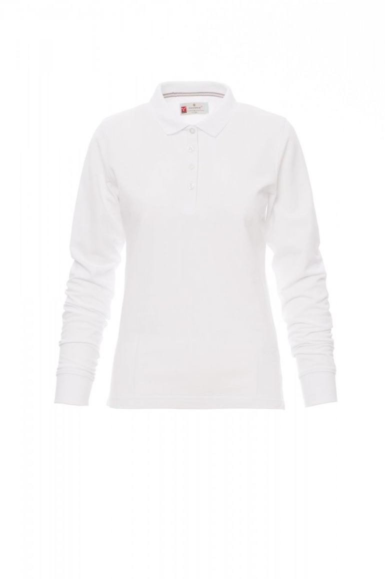 PÓLÓING_HOSSZÚ UJJÚ_Női hosszú ujjú, karcsúsított pólóing 4, színben illeszkedő, gyöngyházhatású gombbal, bordázott gallér és ujjszegély, oldalsó szellőzők, bújtatott varrás a gallérnál kontrasztos színű anyagerősítéssel, sztreccsvarratokkal, oldalsó anyagerősítés, anyagerősítés a nyakrész belső oldalán.