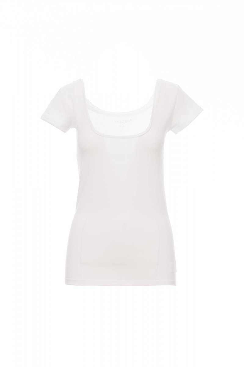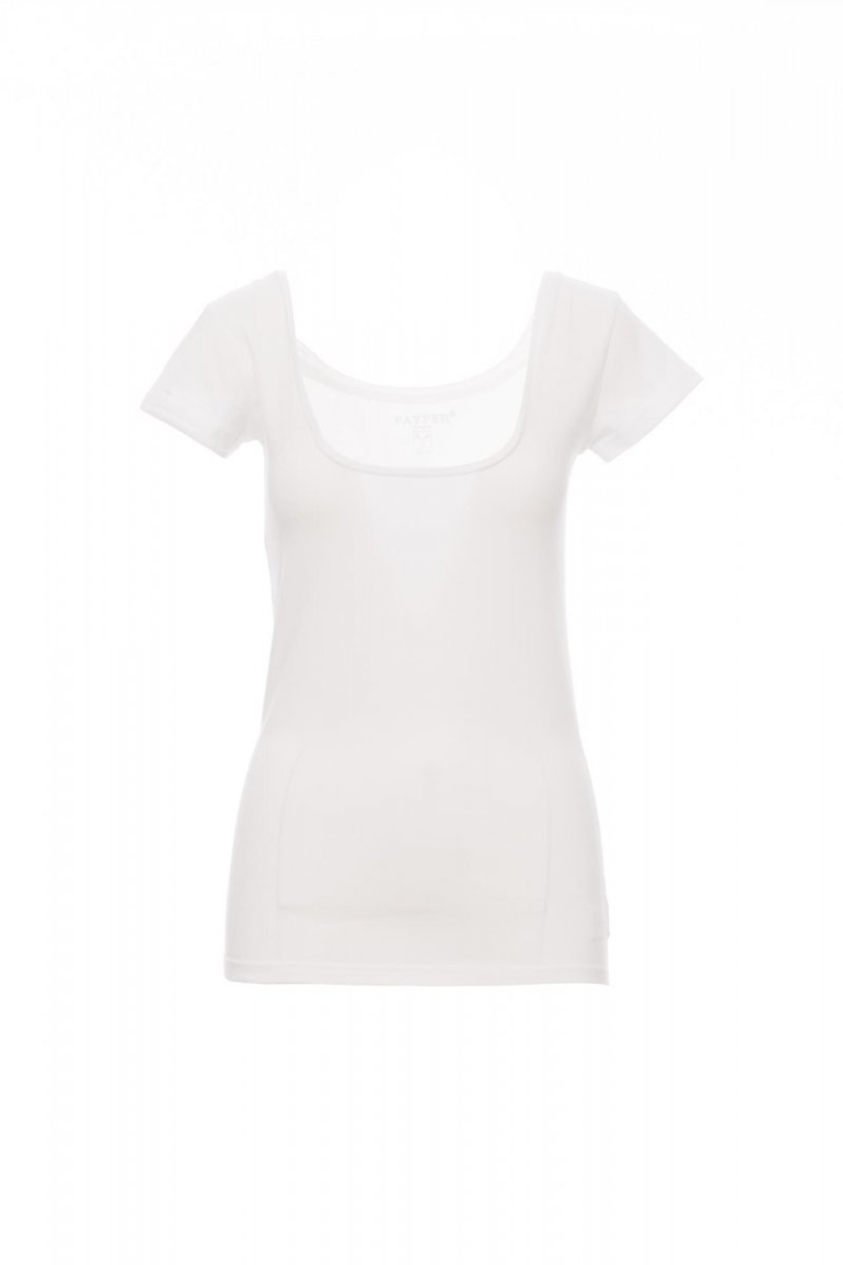 PÓLÓK_RÖVID UJJÚ_Női rövid ujjú, kocka nyakú, karcsúsított póló 1 cm-es nyakrésszel, oldalvarratokkal.