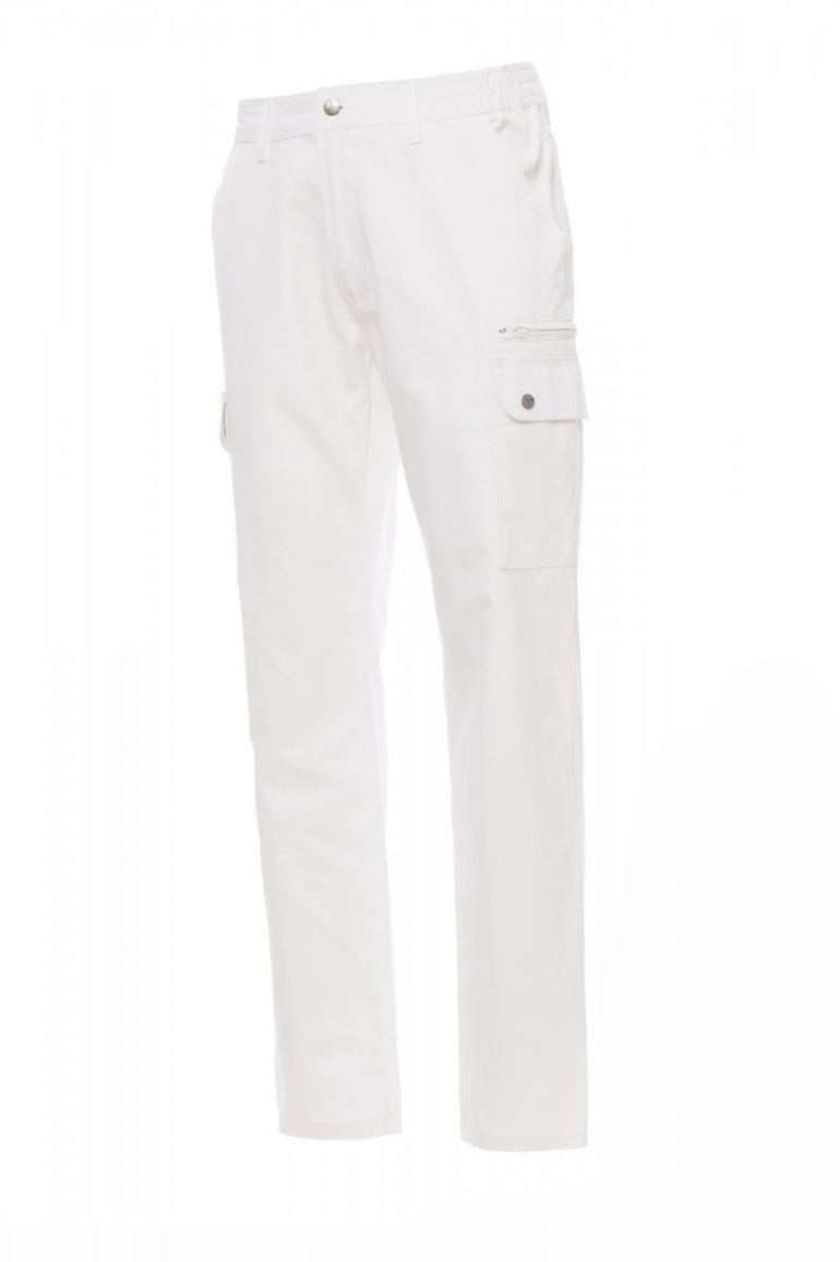 NADRÁGOK_CARGO_Négy évszakos nadrág férfiaknak rugalmas oldalrésszel és derékövvezetőkkel. Cipzáras rögzítés fémgombbal, két elülső zseb, két oldalsó zseb hajtókával és patentgombbal, bal oldalon egy cipzáras zseb, jobb oldalon zseb összehajtható mérőszalagnak, két hátsó zsebnyílás gombbal és gomblyukkal.