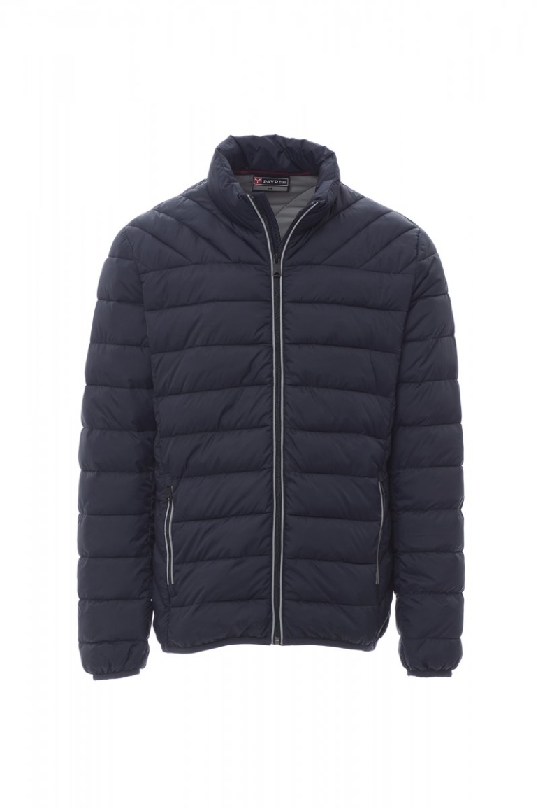 DZSEKIK_IMBOTTITO, PIUMINO SYNTH_Tömörítetlen szállal (160 g/m²) bélelt férfi pehelykabát, 5 mm-es műanyag cipzár fém cipzárkocsival. A mandzsettákon és a derékon keskeny szegély. Két külső cipzáras zseb. A cipzáron fényvisszaverő szegély. Két belső zseb.