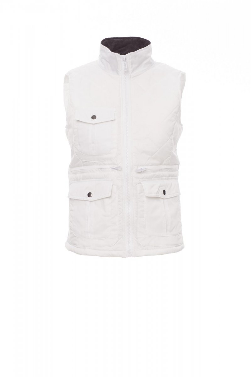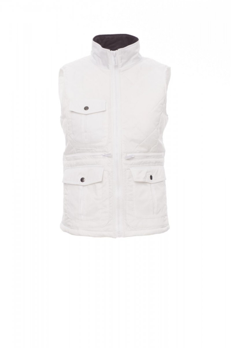 MELLÉNYEK_IMBOTTITO SENZA MANICHE_Kényelmes szabású női steppelt mellény, 8 mm-es műanyag cipzárral és fémhúzókával, gombos oldalsó szellőzőkkel, öt külső zsebbel, kettő LOCK SYSTEM rendszerrel. Párnázott, kordbársonyból készült bordázott belső gallér, egy belső zseb.