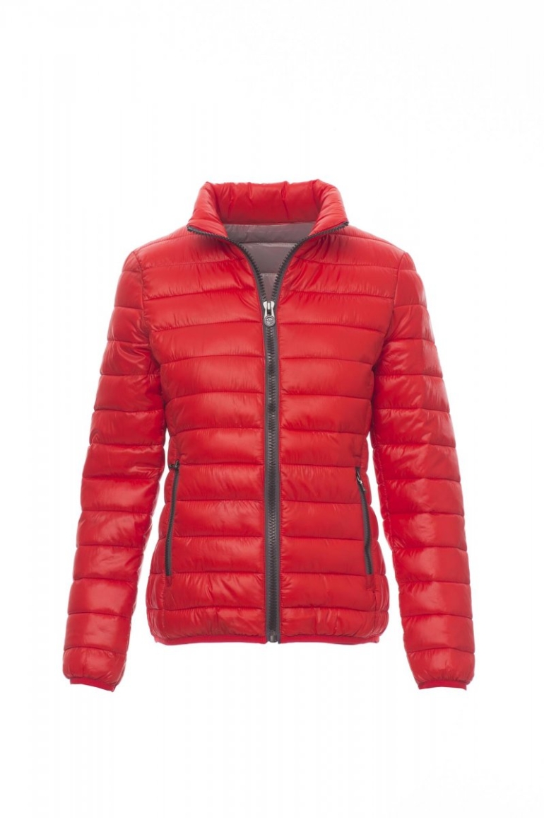 DZSEKIK_IMBOTTITO, PIUMINO SYNTH_Tömörítetlen szállal (160 g/m²) bélelt női pehelykabát, 8 mm-es műanyag cipzár fém cipzárkocsival. A mandzsettákon és a derékon keskeny szegély. Két külső cipzáras zseb. Három belső zseb.