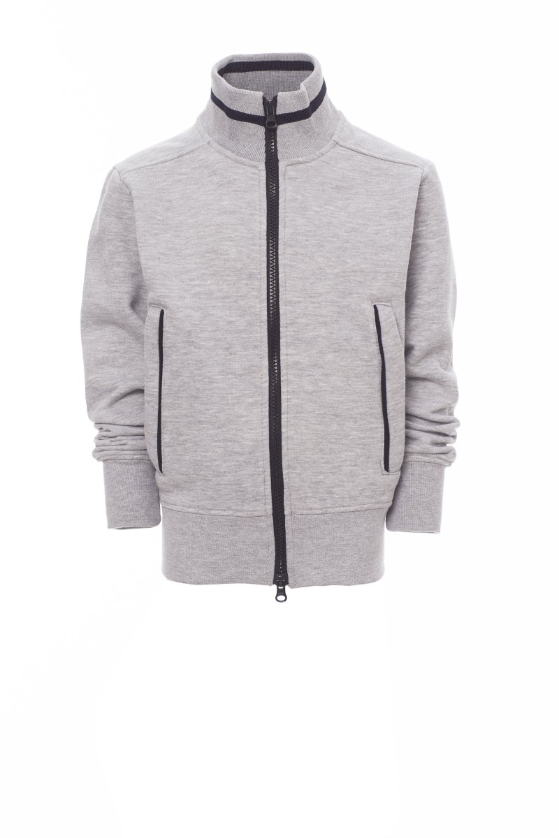 MELEGÍTŐFELSŐK_FULL ZIP_Gyermekmelegítő kontrasztos színű, műanyag, kétoldalas SBS cipzárral, fémhúzókával. Kontrasztos színű gallér, kontrasztos színű oldalzsebek, karcsúsított ujjak, két külső zseb kontrasztos színű cipzárral, sztreccsanyagból készült, bordázott mandzsettával és szegéllyel, megerősített varratokkal.