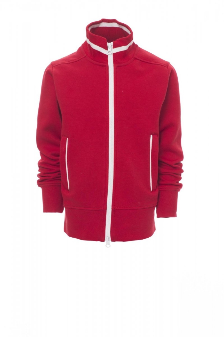 MELEGÍTŐFELSŐK_FULL ZIP_Gyermekmelegítő kontrasztos színű, műanyag, kétoldalas SBS cipzárral, fémhúzókával. Kontrasztos színű gallér, kontrasztos színű oldalzsebek, karcsúsított ujjak, két külső zseb kontrasztos színű cipzárral, sztreccsanyagból készült, bordázott mandzsettával és szegéllyel, megerősített varratokkal.