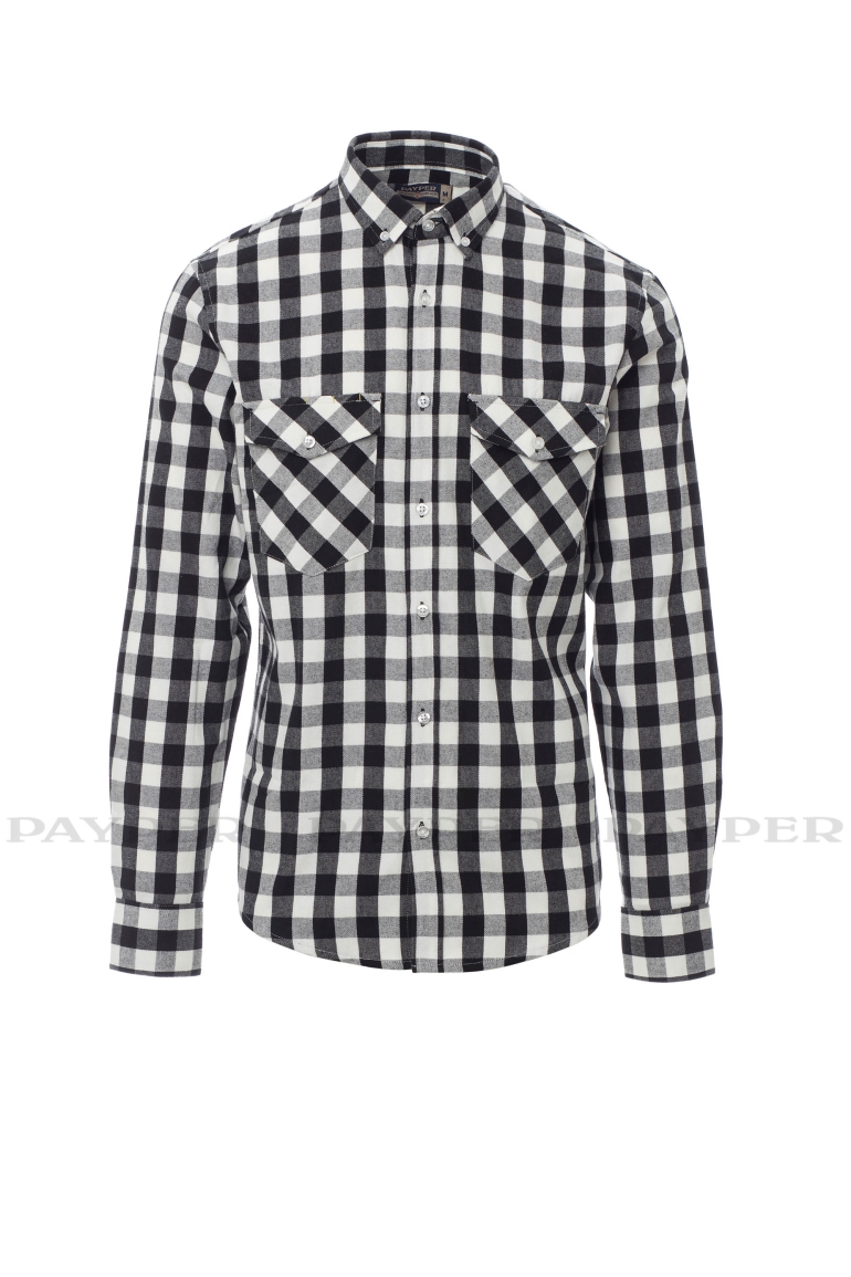 Skót kockás ing, hosszú ujjú , gyöngyhatású gombokkal, angol gallér, két zárt mellzseb füllel gombokkal és golyóstoll tartóval.