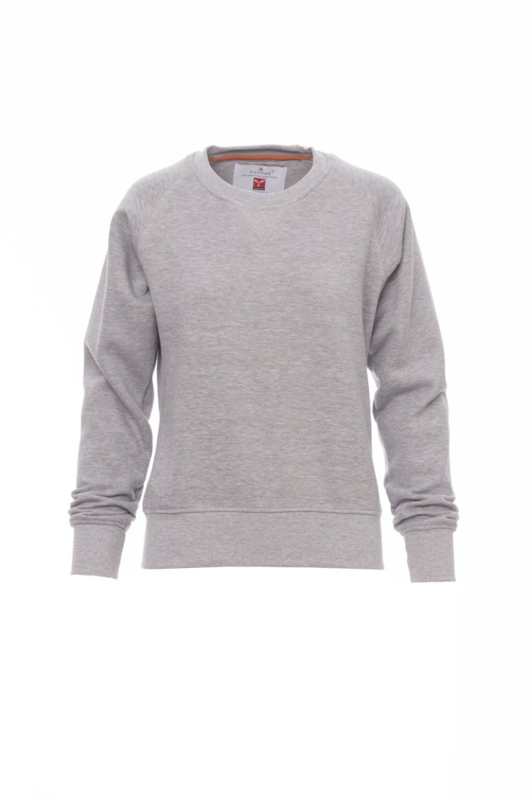 MELEGÍTŐFELSŐK_KEREKNYAKÚ_Női környakú melegítő, raglán ujjakkal, V-kialakítású steppeléssel a nyaknál, sztreccsanyagból készült, bordázott mandzsettával és szegéllyel, megerősített varratokkal.