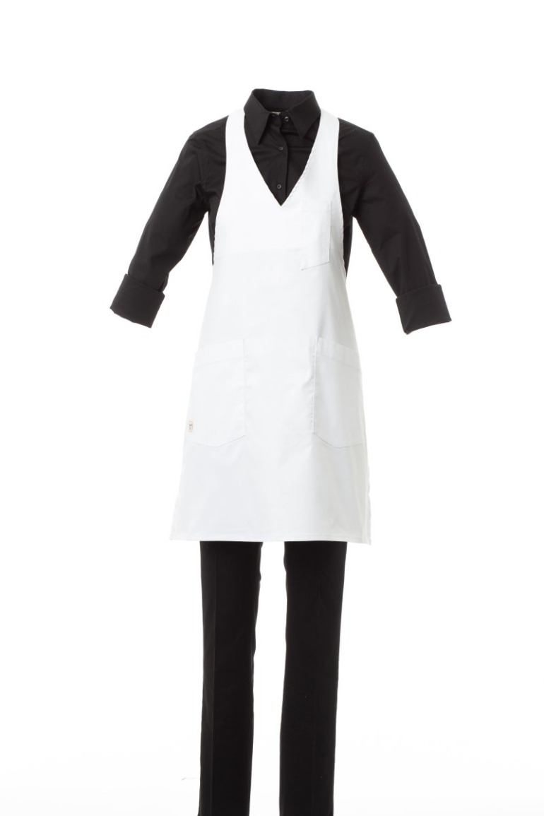 KÖTÉNY_PÁNTOS KÖTÉNY_Uniszex, multifunkcionális kötény, hátul két gombbal állítható, V-nyakú nyakpánt, pamut twillből és Lycra® T400® anyagból, kiváló rugalmas és légáteresztő tulajdonságokkal. A bal oldalon egy tolltartó zsebbel és két derékzsebbel. Mérete: 70×65 cm.