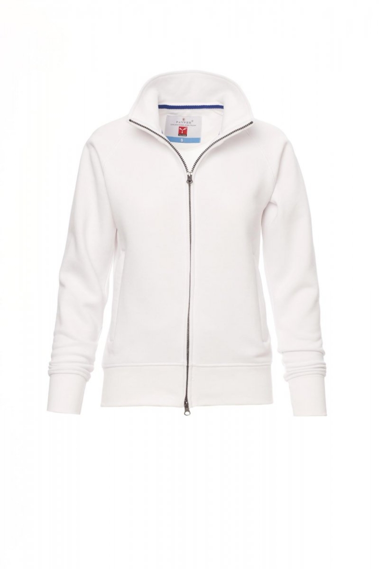 MELEGÍTŐFELSŐK_FULL ZIP_Női melegítő teljes hosszúságú, műanyag cipzárral, dupla fémhúzókával, raglán ujjakkal, két zsebbel és bújtatott cipzárakkal, sztreccsanyagból készült, bordázott mandzsettával és derékkal, megerősített varratokkal.