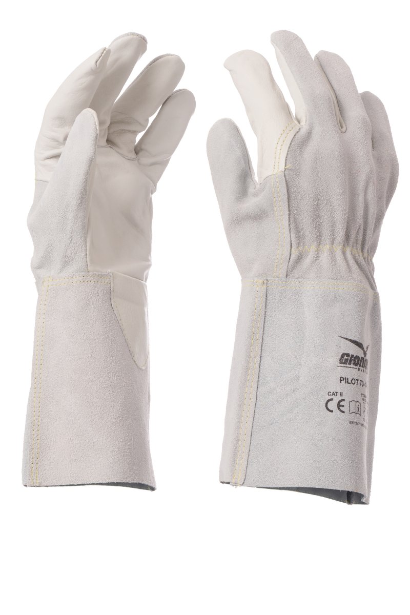 Hegesztőkesztyűk_RINFORZATO CON MANICHETTA 15CM_Hegesztőkesztyű nappa marhabőrből készült tenyérrel és mutatóujjal, hasított marhabőr kézfejjel, 14 cm-es, hasított bivalybőr hosszított csuklórésszel. Nappa marhabőrből készült érvédő és rugalmas csuklószorító. Varrás para-aramid fonallal. Jellemzők: puha, masszív, tartós. Erősségek: kényelem, könnyen használhatóság. Alkalmazási területek: alkalmas nehéz, szögletes élű, durva, abrazív és forró tárgyak kezeléséhez, hegesztéshez, csiszoláshoz és sorjázáshoz, rendszerek tisztításához, asztalos- és lakatosmunkákhoz, hegesztési munkálatokhoz. Legkisebb értékesíthető mennyiség: 1 tucat (12 pár).