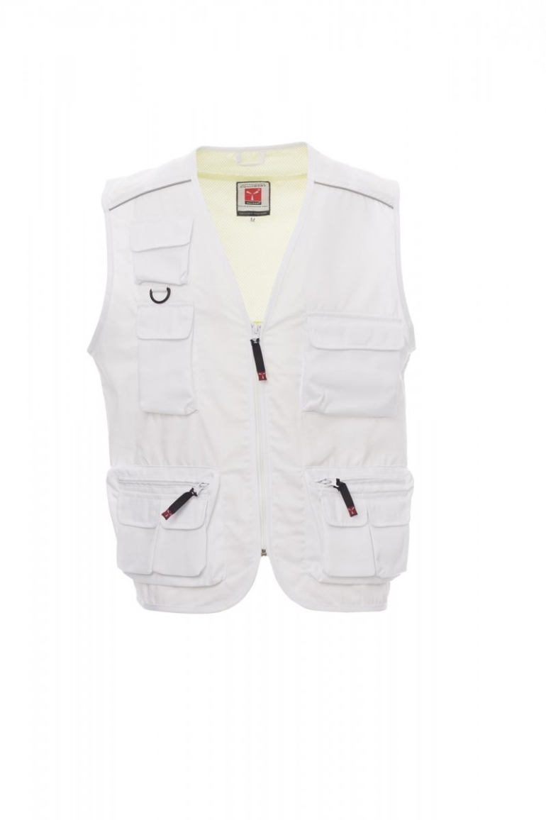 MELLÉNYEK_NO IMBOTTITO SENZA MANICHE_Nyári cipzáras mellény, több elülső zsebet tartalmazó zsebrendszer megfordítható jelvénytartóval, fényvisszaverő csíkok a vállaknál és a hátrészen, tágas hátsó zseb vadászathoz. Kontrasztos színű dry-tech belső rész, nyitott az egyszerű nyomtatás és hímzés érdekében.