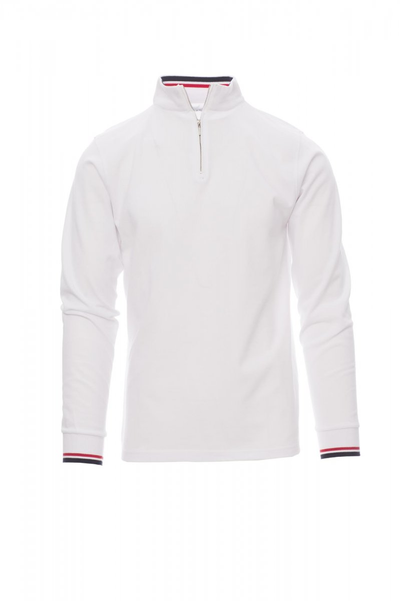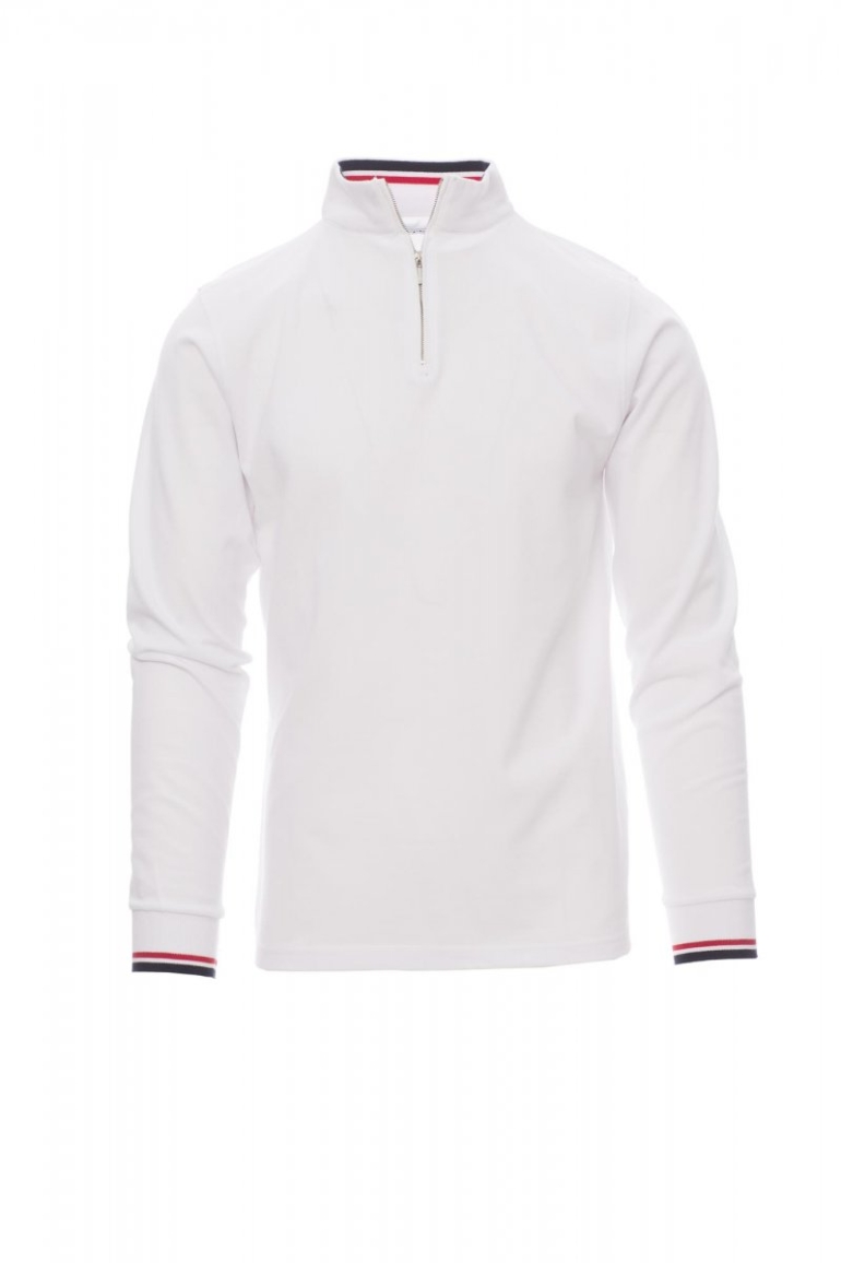 PÓLÓING_HOSSZÚ UJJÚ_Hosszú ujjú pólóing fém félcipzárral, karcsúsított nyakrésszel, egyenes oldalak, sztreccs anyagból készült, bordázott mandzsetta, kontrasztos színű díszítés a gallér belső oldalán és a mandzsettáknál, anyagerősítés a nyakrész belső oldalán