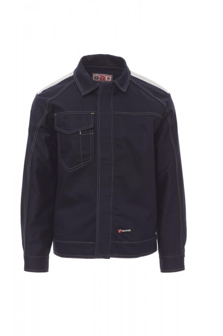 DZSEKIK_NO IMBOTTITO_Béleletlen téli dzseki, kontrasztos színű varrat, fényvisszaverő elemek a vállaknál és hátul, farmerstílusú karcsúsított modell, elül záródó rejtett műanyag gombokkal, okostelefonzseb, levehető jelvénytartó, és tolltartó a hajtókás, tépőzáras mellzsebben. Gombos mandzsetta, tépőzárral állítható derék.