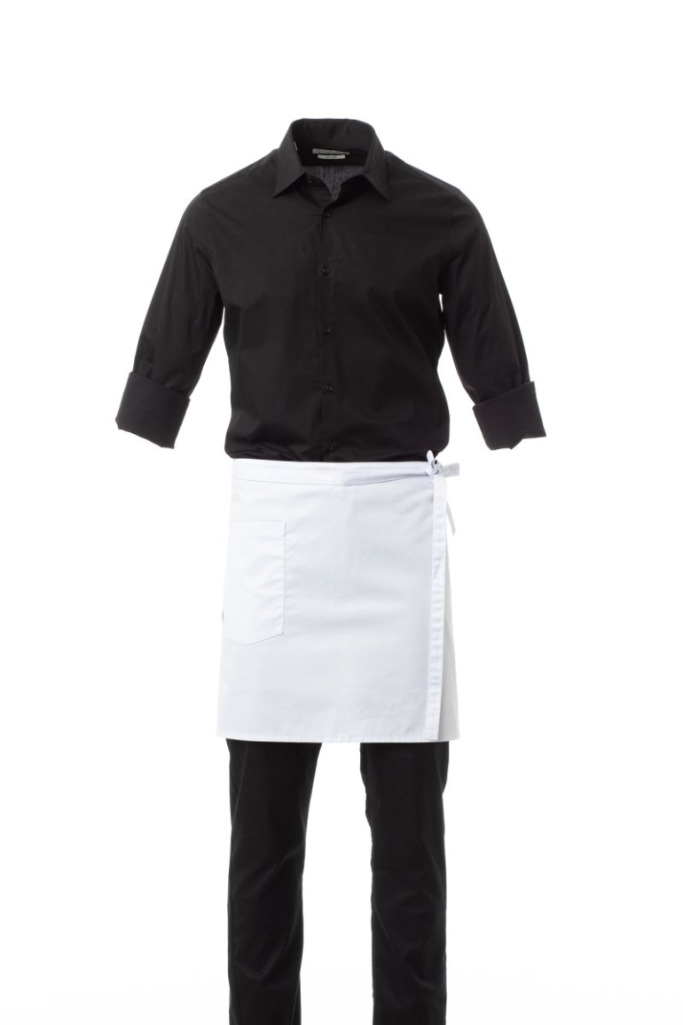 KÖTÉNY_RÖVID DEREKAS KÖTÉNY_Uniszex, multifunkcionális, francia stílusú kötény, polipamut anyagból. A közepétől eltérő helyen zseb beépített tolltartóval. Mérete: 80×45 cm.
