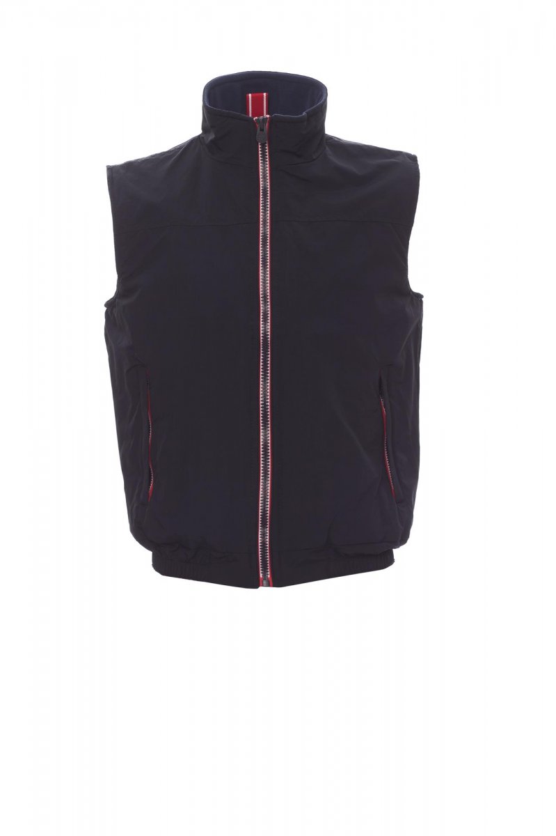 MELLÉNYEK_IMBOTTITO SENZA MANICHE_Uniszex mellény 8 mm-es kontrasztos színű cipzárral, rugalmas szegély, két külső zseb bújtatott cipzárral. Párnázott, mikroszálas bundás bélés a belső galléron és hátul, cipzáras belső zseb fülhallgatónak és okostelefon kábelének, cipzár a mellkason és alul az egyszerű nyomtatás és hímzés érdekében.