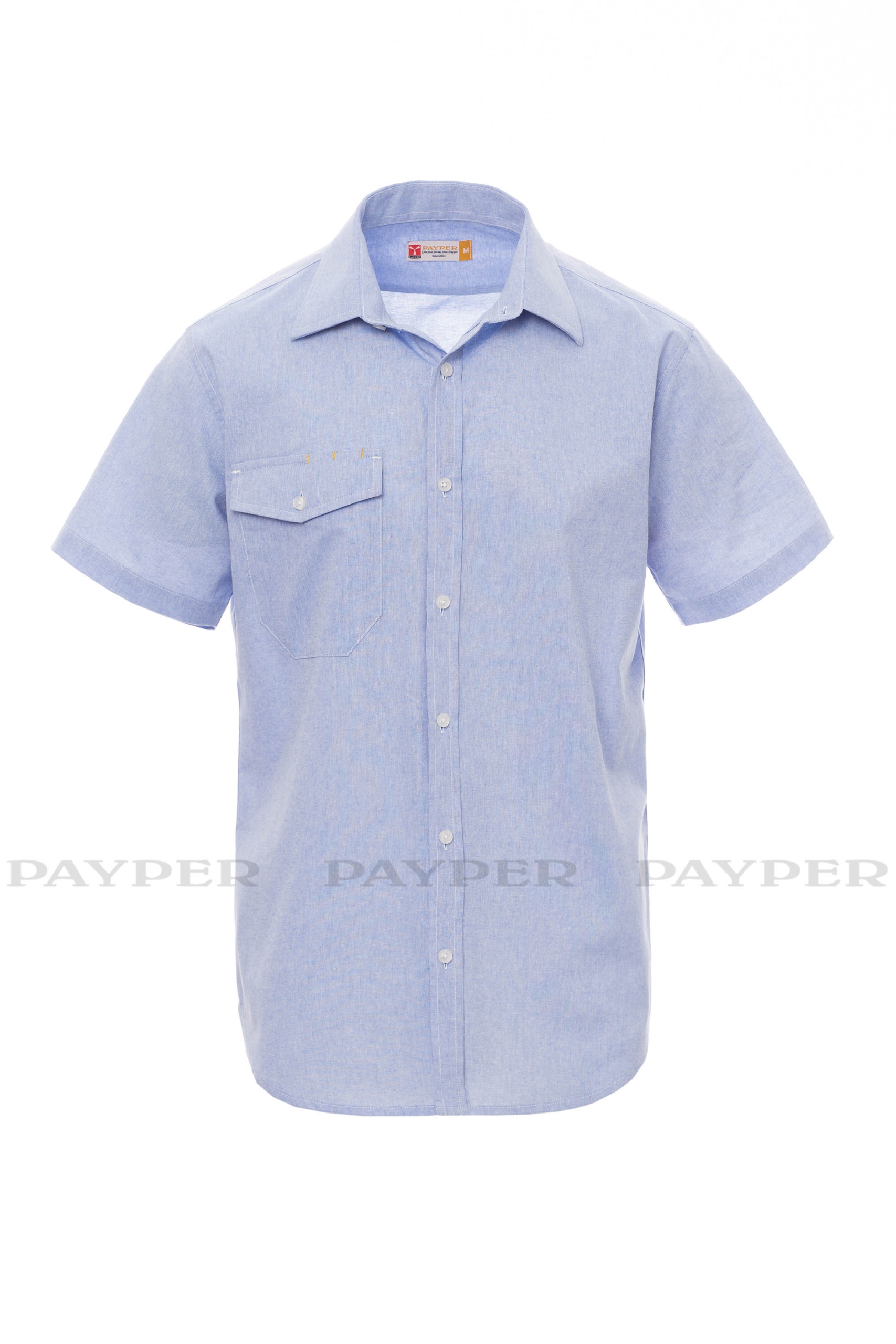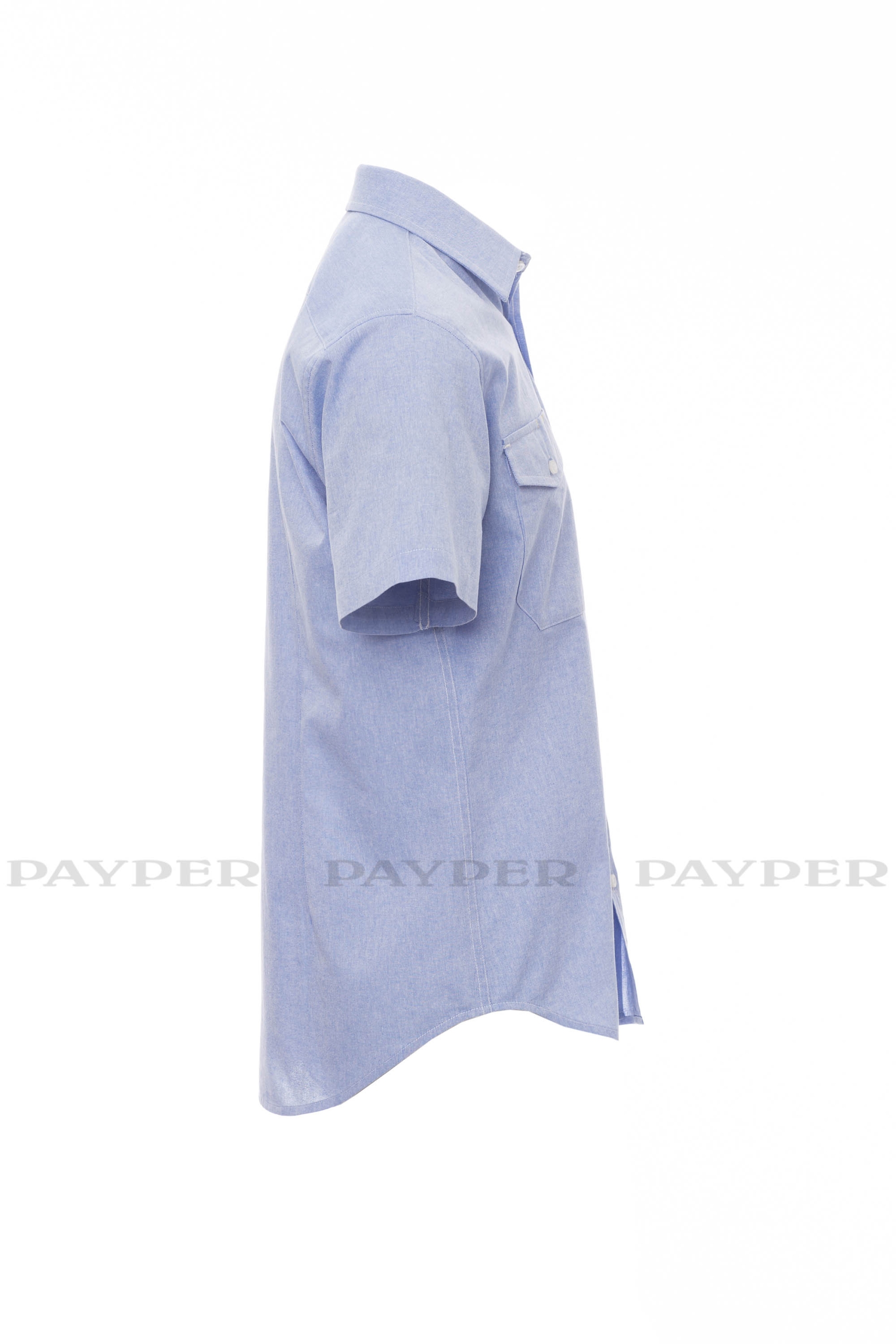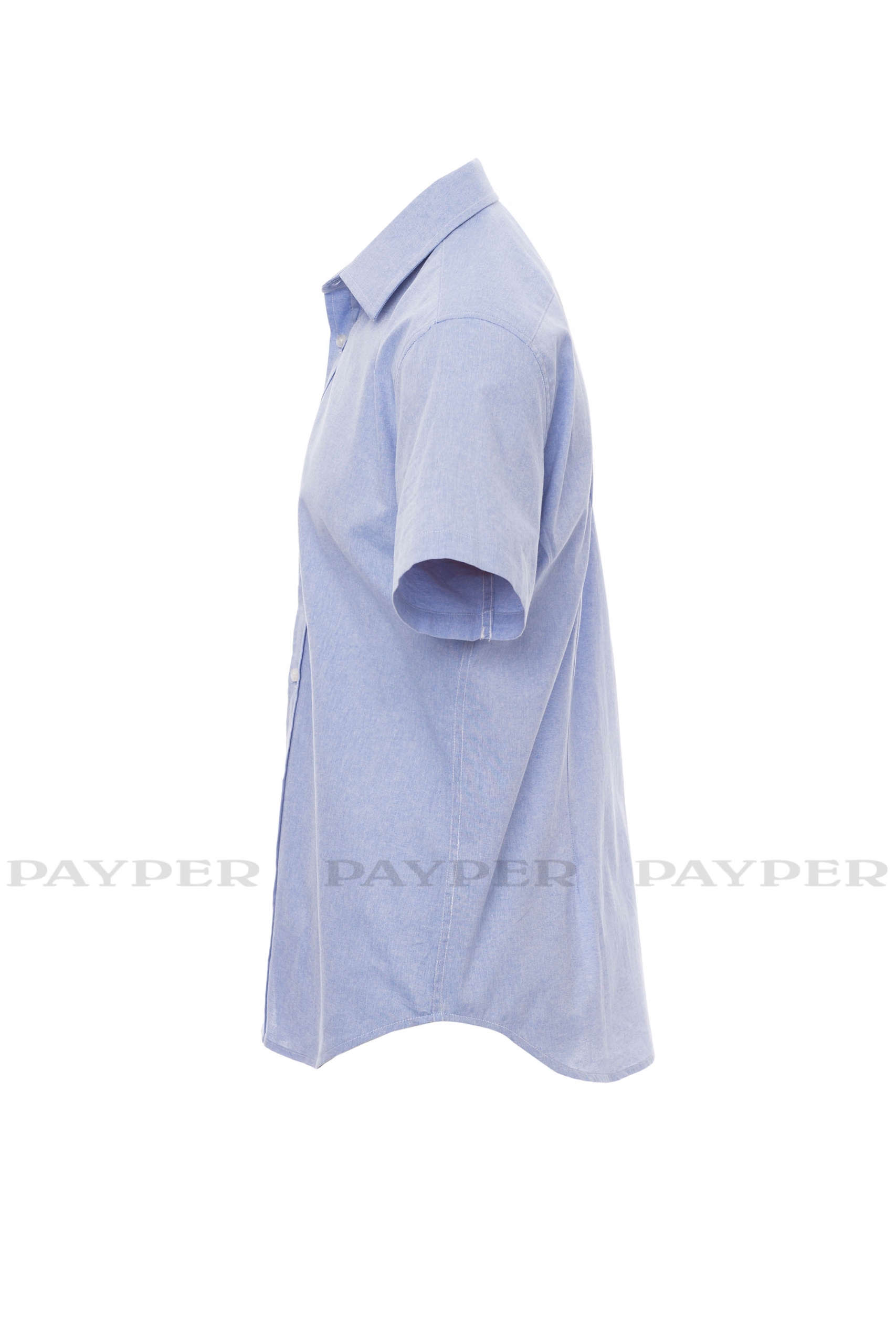 Rövid ujjú férfiing enyhén szűkülő szabással, olasz stílusú gallér, elöl berakással, látható varrással és hozzáillő gombbal. Kontúros mandzsettarész két gombbal és gomblyukkal, hátul vállrésszel és bevarrásokkal, a mellkason egy technikai zseb gombos hajtókával és két tolltartó nyílással.