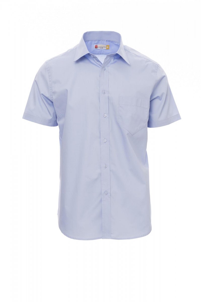 Fésült pamutból készült, finom szövésű férfi rövid ujjú ing, enyhén karcsúsított, olasz stílusú gallérral, színben harmonizáló gombokkal díszített, kézzel varrott gombrész, egy baloldali zseb a mellkason, hátul bevarrással és összehúzással. Az „Easy Care” kezelésnek köszönhetően könnyen kezelhető anyag.