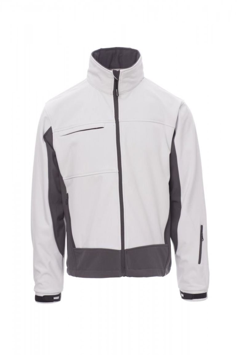 SOFTSHELL DZSEKIK_KAPUCNIS BÉLELETLEN_WP 8000 mm H₂O, WVT 5000 g/m² 24h. Kéttónusú, 3 rétegű férfi softshell raglán szabású ujjal, megerősítő bevonatos SBS cipzárral. Gallér alá hajtható kapucni. Gumírozott csuklószorítóval és tépőzárral állítható mandzsetták. Két oldalsó cipzáras zseb, egy mellzseb behúzható jelvénytartóval és a karon egy síbérletzseb. A derékon húzózsinór.
