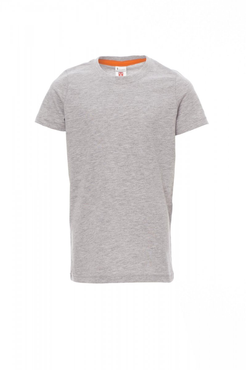 PÓLÓK_RÖVID UJJÚ_Gyermek rövid ujjú, környakú póló 1,5 cm-es spandex kevertszálas bordázott nyakrésszel, felső szegéssel elöl, a nyakrész belső oldalán látható kontrasztos színű, válltól vállig érő anyagerősítéssel, sztreccsvarratok, csőszerű kialakítás (a terepmintás kivitel oldalvarratokkal)