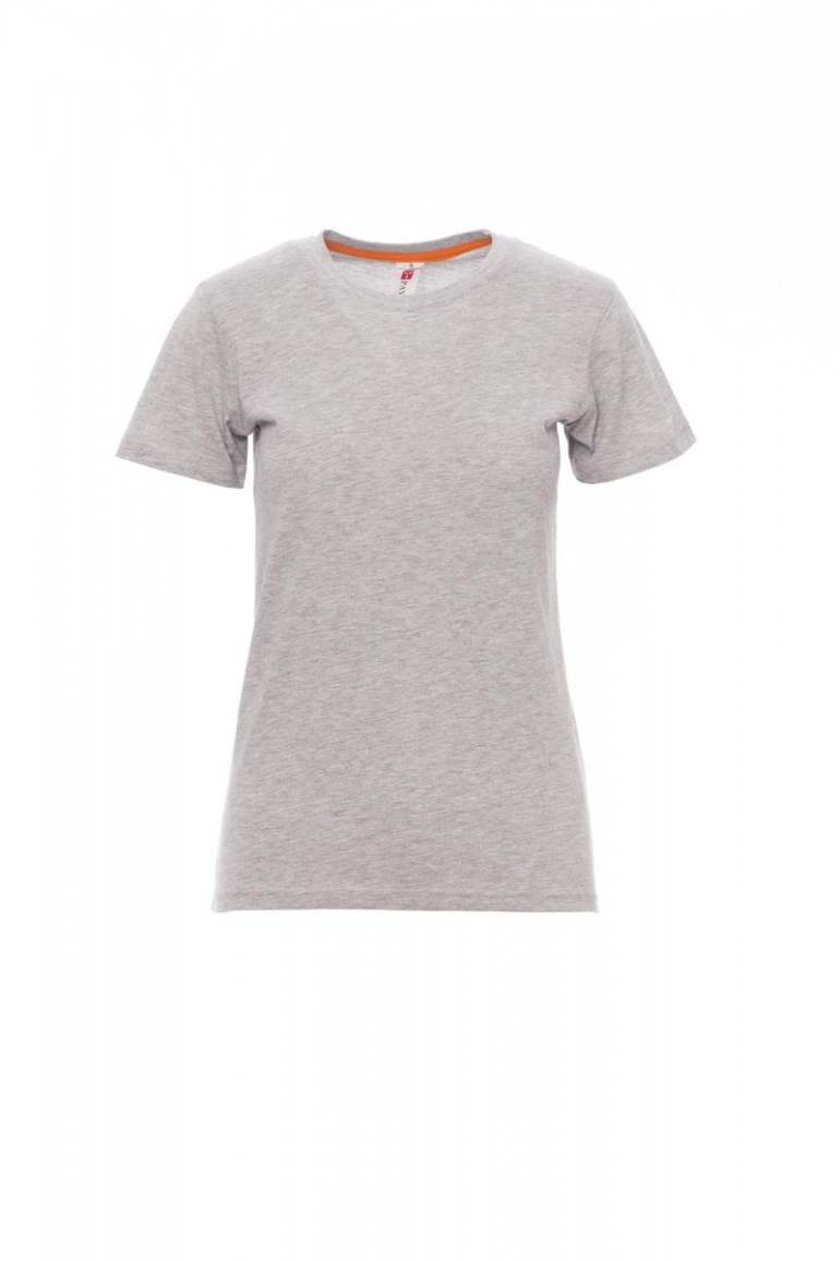 PÓLÓK_RÖVID UJJÚ_Női rövid ujjú, karcsúsított, környakú póló 1,5 cm-es spandex kevertszálas bordázott nyakrésszel, felső szegéssel elöl, a nyakrész belső oldalán látható kontrasztos színű, válltól vállig érő anyagerősítéssel, sztreccsvarratok, oldalvarratok