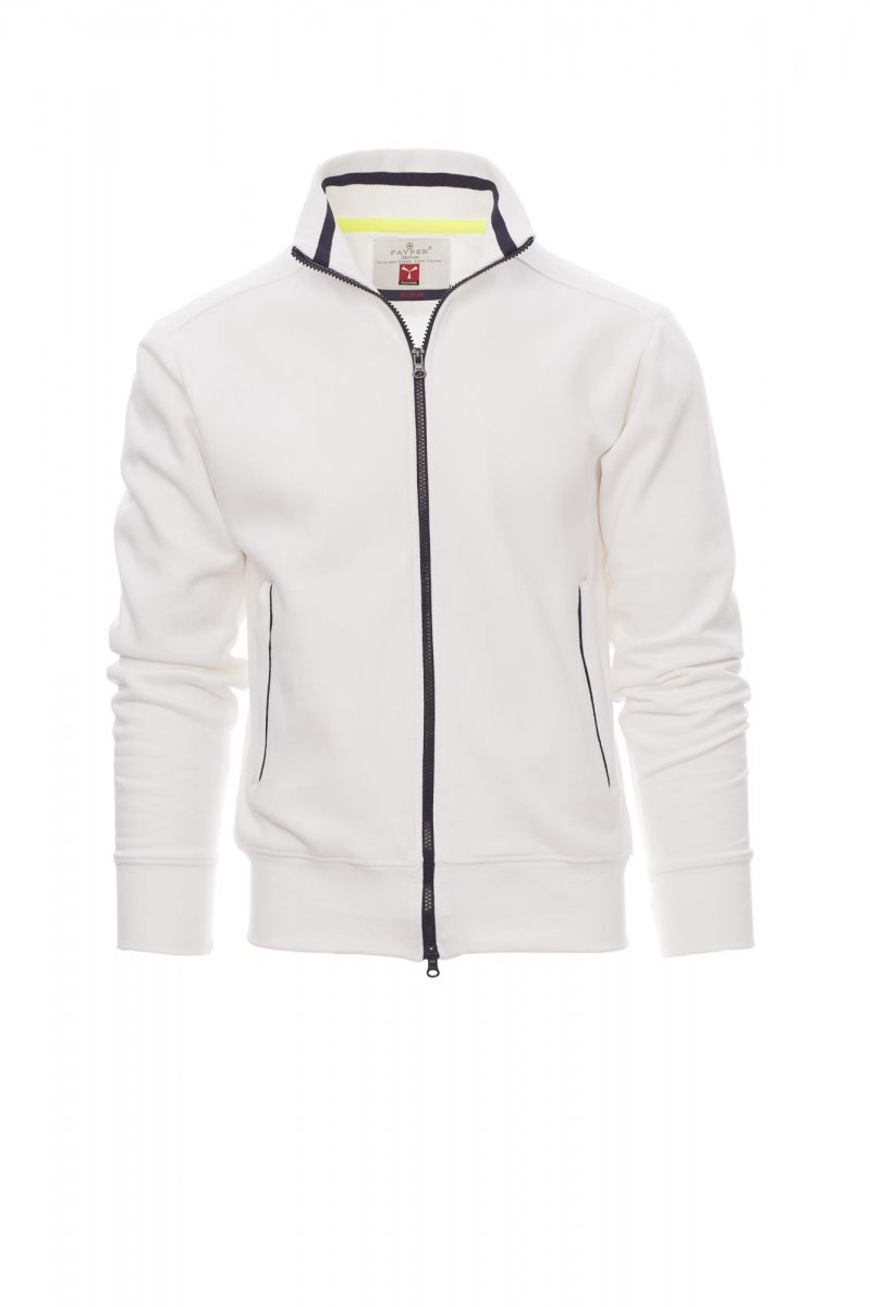 MELEGÍTŐFELSŐK_FULL ZIP_Férfimelegítő kontrasztos színű, műanyag, kétoldalas SBS cipzárral, fémhúzókával. Kontrasztos színű gallér, kontrasztos színű oldalzsebek, karcsúsított ujjak, két külső zseb kontrasztos színű cipzárral, sztreccsanyagból készült, bordázott mandzsettával és szegéllyel, megerősített varratokkal.