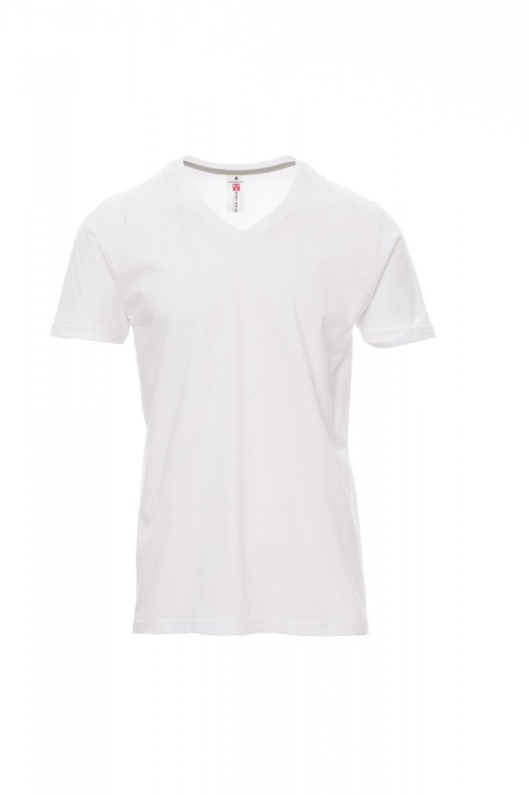 PÓLÓK_RÖVID UJJÚ_Férfi rövid ujjú, V-nyakú póló 1,5 cm-es spandex kevertszálas bordázott nyakrésszel, felső szegéssel elöl, a nyakrész belső oldalán látható kontrasztos színű, válltól vállig érő anyagerősítéssel, sztreccsvarratok, csőszerű kialakítás.