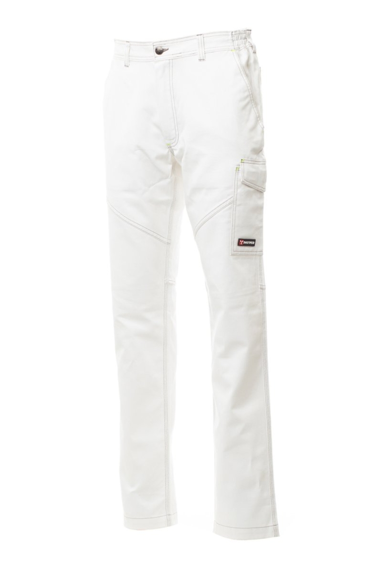 NADRÁGOK_CARGO_Uniszex nyári nadrág rugalmas oldalrésszel és derékövvezetőkkel. Cipzáras rögzítés műanyag gombbal, két klasszikus kialakítású zseb elöl, egy LOCK SYSTEM oldalzseb, zseb mérőszalag számára, két hátsó zseb, egy nyitott és egy hajtókás és tépőzáras zseb, kontrasztos betétek és varrások, fényvisszaverő sávok a hátsó zseben, tripla varrat. A fehér színű modell esetében farmergomb.