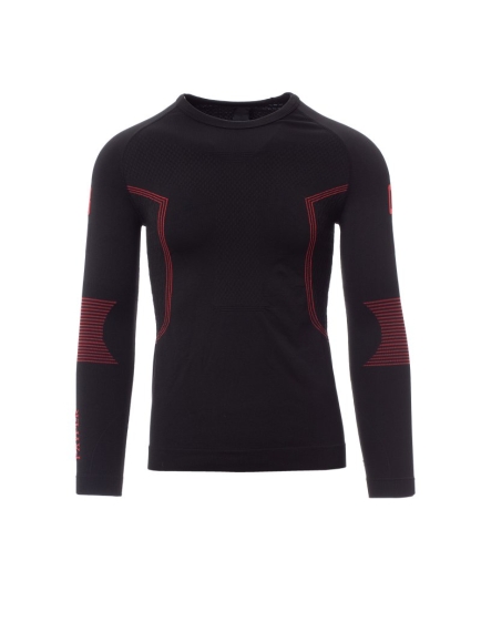 Termoruházat elasztikus, bordázott . Recézett anyag elöl és hátul, tökéletes anatómiai viselhetőség . Különleges szövés az izmok területének megfelelő szellőzése érdekében.