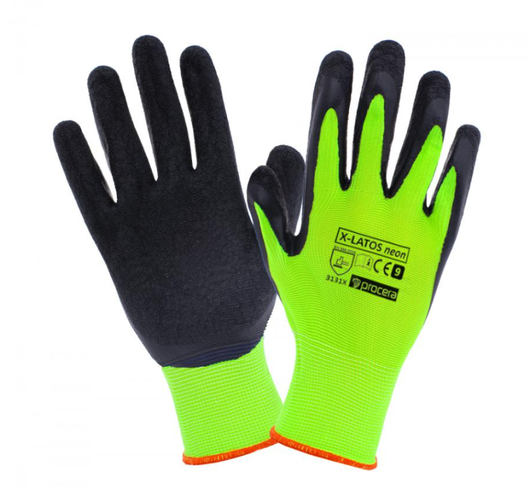Tenyéren és ujjbegyen latex mártott, poliészter felsőrésszel, jó tapadás, kiváló kopásállóság. Szabvány: EN388 3131X