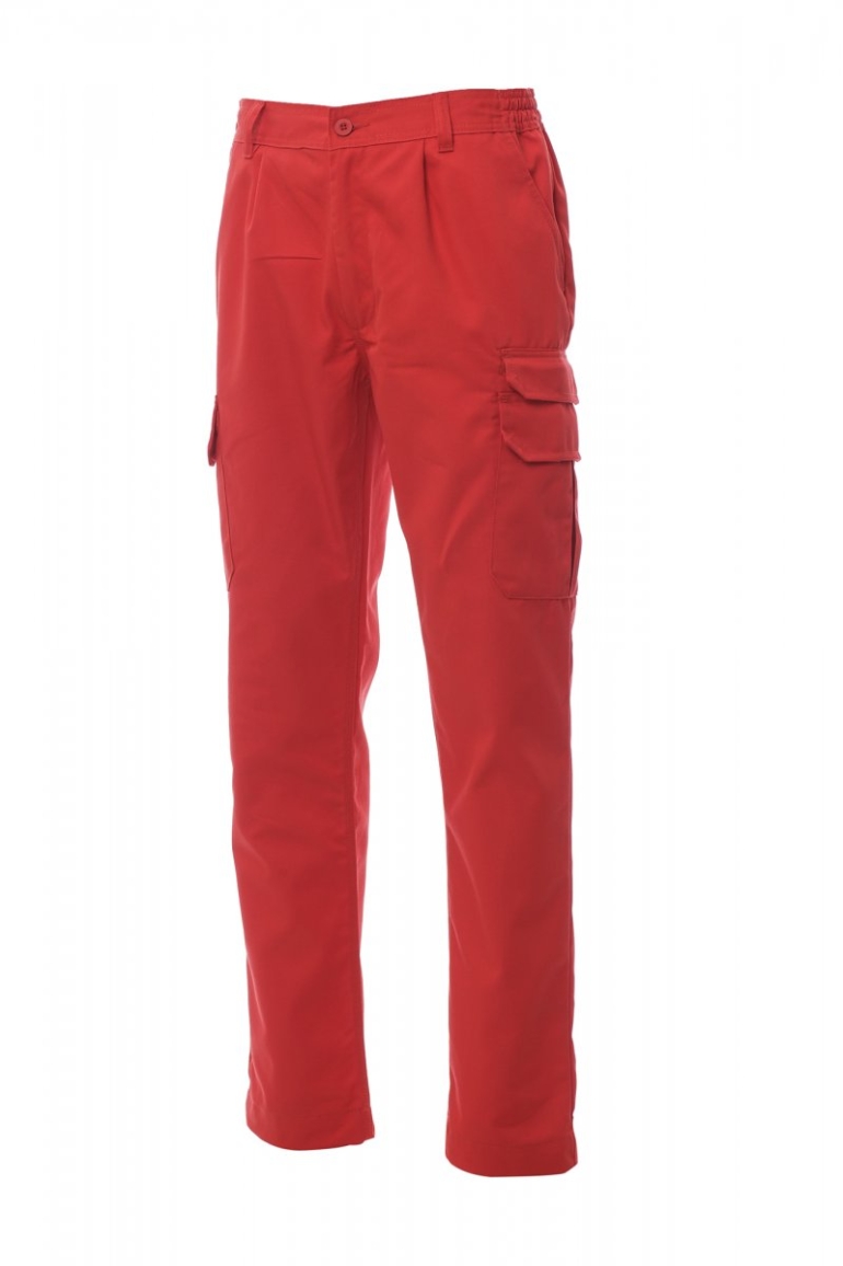 NADRÁGOK_CARGO_Több zsebes nadrág, elasztikus oldalsó övrész és övbújtatók, cipzáras és gombos, az ülepen és a szárak belső részén tripla varrással, két klasszikus szabású első zseb, aprópénztartó zsebecske, a jobb oldalon mérőszalag zseb, bal oldalon LOCK SYSTEM hajtókás zseb két hátsó zseb, közülük az egyik hajtókával.
