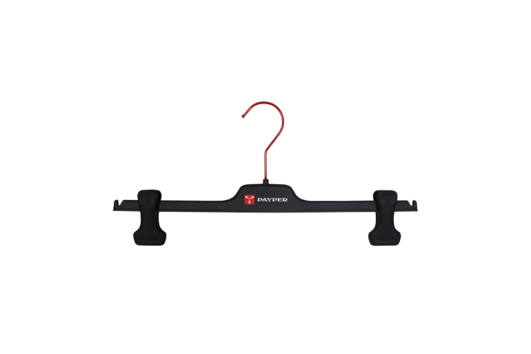 ÉRTÉKESÍTÉS_AKASZTÓK_Akasztó 2 darab speciális szivaccsal ellátott csipesszel a jobb tartás, valamint a kényes ruhadarabok fokozottabb védelme érdekében, nyomtatott logóval, enyhén csúszásgátló, soft-touch gumírozással, ideális bermudanadrágokhoz és sportnadrágokhoz.