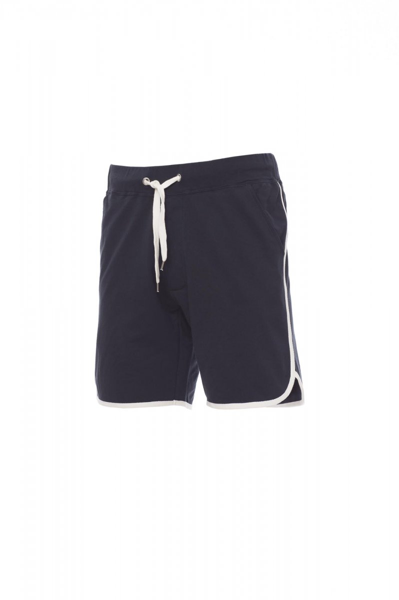BERMUDA RÖVIDNADRÁG_SPORTRUHÁZAT_Bermuda kialakítású, rövidszárú melegítőnadrág férfiaknak sztreccsanyaggal a derékrészen és állítózsinórral, cipzáras slicc, két elülső zseb és kontrasztos színű díszítés.