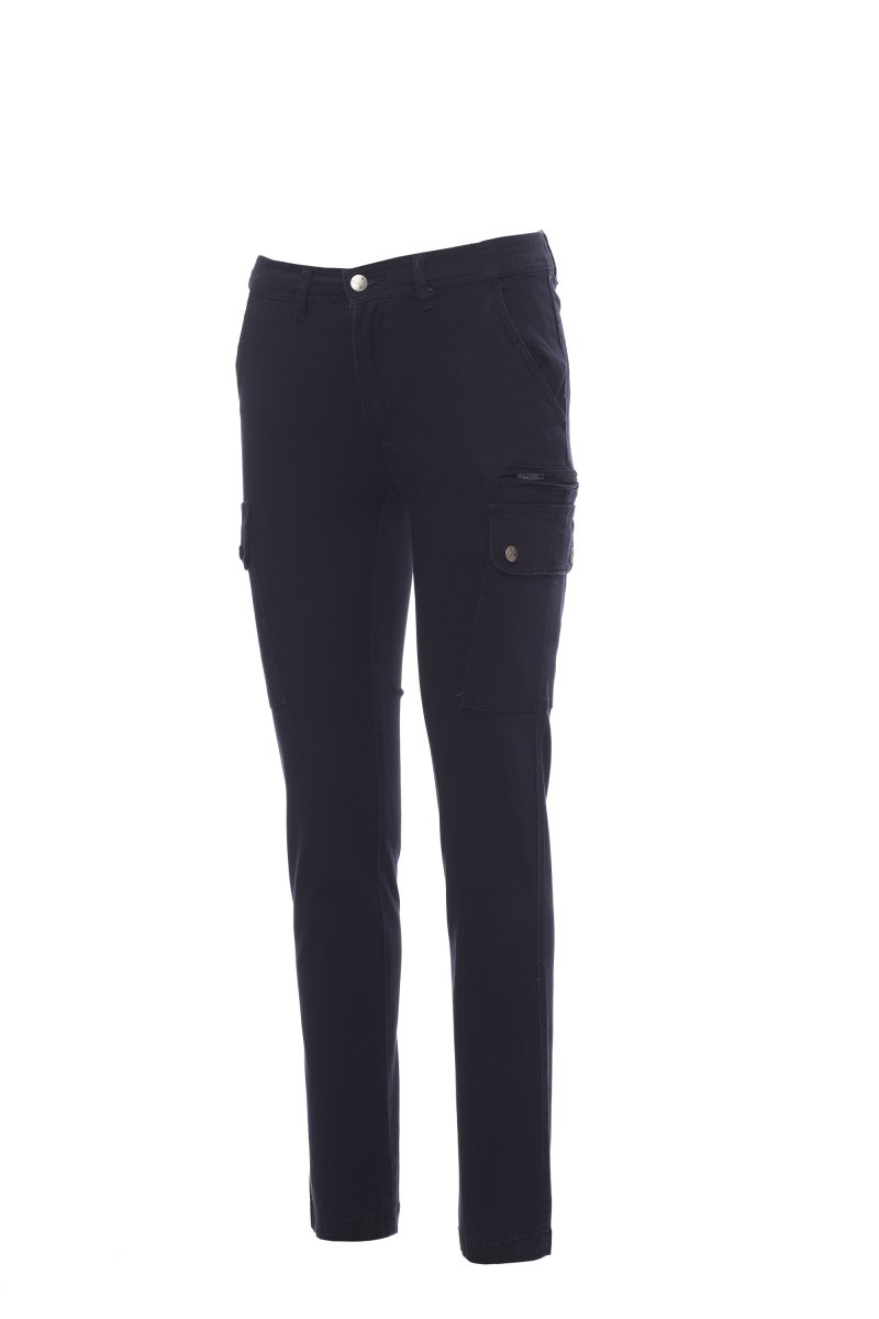 NADRÁGOK_CARGO_Klasszikus női nyári nadrág szakadásbiztos anyagból, rugalmas oldalrésszel és derékövvezetőkkel. Cipzáras rögzítés fémgombbal, két klasszikus elülső zseb, két oldalsó zseb hajtókával és patentgombbal, bal oldalon egy cipzáras zseb, jobb oldalon visszahúzható mérőszalag zseb, két hátsó zsebnyílás gombbal és gomblyukkal.