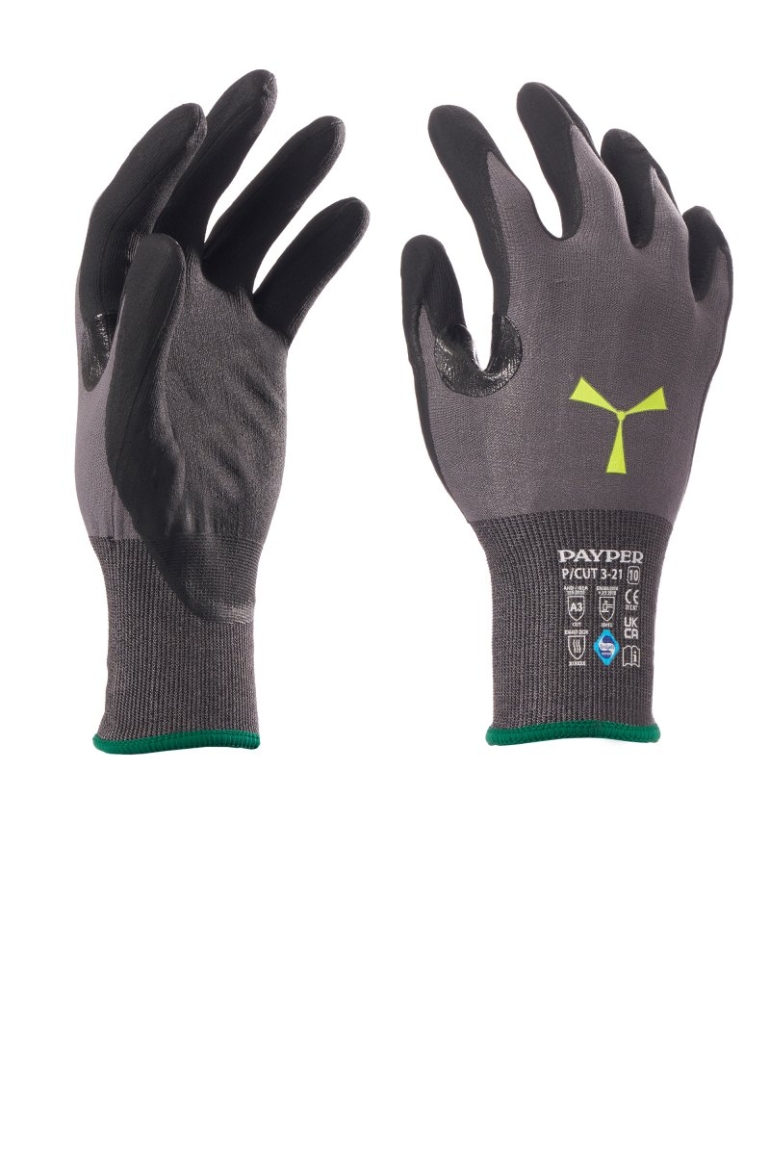 VÁGÁSÁLLÓ KESZTYŰK_LÉGÁTERESZTŐ HÁTSÓ RÉSZ KÖTÖTT CSUKLÓRÉSSZEL_Vágásálló kesztyű, HPPE 21G fonal, kötött mandzsetta, a hüvelyk- és mutatóujj között nitril megerősítés, a tenyéren nitril mikrohab bevonat, amely kiváló fogást biztosít. Érintőképernyő-kompatibilis tenyérrész. Jellemzők: nagyon kényelmes és rugalmas fonal. Erősségek: kényelem, rugalmasság, vágásállósági szint: C (TDM cut)/A3 (ANSI/ISEA). Alkalmazási területek: éles tárgyak kezelése és összeszerelése, ideális száraz vagy mérsékelten olajos/szénhidrogénes környezetben. Tartós frissesség a Sanitized® fertőtlenítő funkciónak köszönhetően. A karton tartalma: 6 darab termékkihelyező doboz egyenként 12 pár kesztyűvel, azaz összesen 72 pár kesztyű. Mindegyik párhoz tartozik egy kilyukasztott tartó, amellyel felakasztva lehet kihelyezni. Minimálisan értékesíthető egység: 12 pár (1 tucat). A szegély mérettől függően eltérő színű.