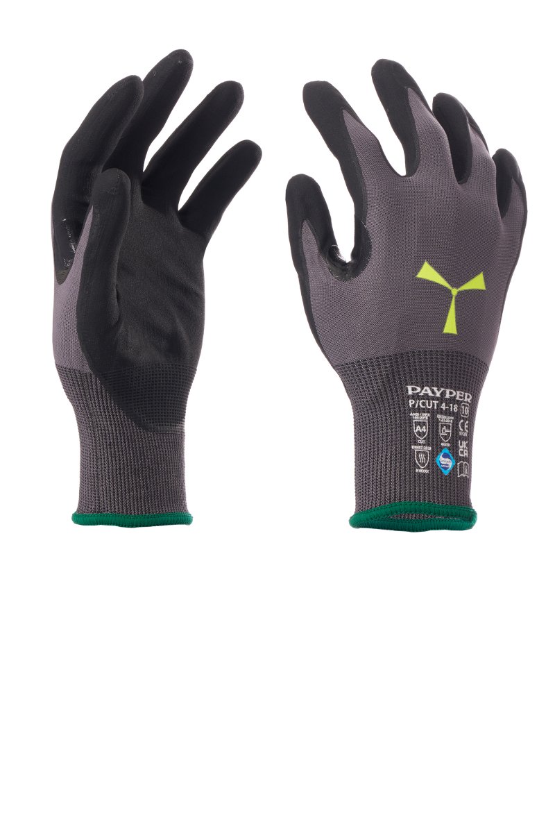 VÁGÁSÁLLÓ KESZTYŰK_LÉGÁTERESZTŐ HÁTSÓ RÉSZ KÖTÖTT CSUKLÓRÉSSZEL_Vágásálló kesztyű, HPPE 18G fonal, kötött mandzsetta, a hüvelyk- és mutatóujj között nitril megerősítés, a tenyéren nitril mikrohab bevonat, amely kiváló fogást biztosít. Érintőképernyő-kompatibilis tenyérrész. Jellemzők: ellenálló, kényelmes és rugalmas fonal. Erősségek: kényelem, rugalmasság, vágásállósági szint D (TDM cut)/A4 (ANSI/ISEA). Alkalmazási területek: éles tárgyak kezelése és összeszerelése, ideális száraz környezetben vagy mérsékelten olajos/szénhidrogénes környezetben. Tartós frissesség a Sanitized® fertőtlenítő funkciónak köszönhetően. A karton tartalma: 6 darab termékkihelyező doboz egyenként 12 pár kesztyűvel, azaz összesen 72 pár kesztyű. Mindegyik párhoz tartozik egy kilyukasztott tartó, amellyel felakasztva lehet kihelyezni. Minimálisan értékesíthető egység: 12 pár (1 tucat). A szegély mérettől függően eltérő színű.