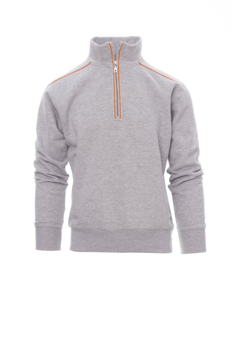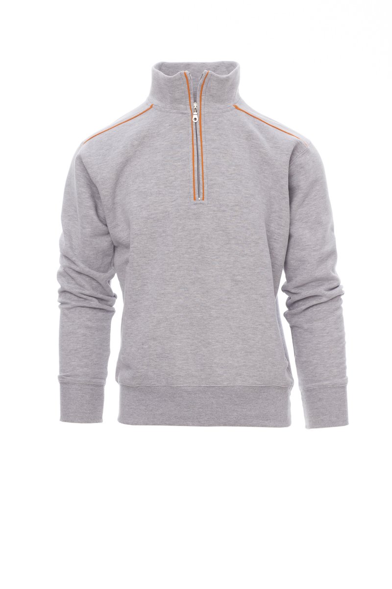 MELEGÍTŐFELSŐK_FÉLIG CIPZÁRAS_Melegítő műanyag félcipzárral, fémhúzókával, kontrasztos színű elemekkel a vállnál, cipzárélnél és a hátrészen. Két cipzáras zsebbel, sztreccs anyagból készült, bordázott mandzsettával és szegéllyel