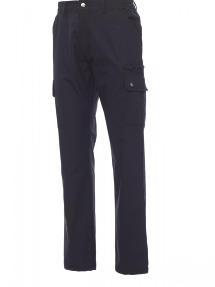 NADRÁGOK_CARGO_Uniszex nyári nadrág, elasztikus fényvisszaverő oldalsó betéttel, a derékon övbújtatók, cipzá-ras, műanyag gombbal, két klasszikus szabású első zseb, a bal oldali LOCK SYSTEM típusú, mé-rőszalagzseb. Két hátsó zseb, az egyik nyitott, a másik tépőzáras hajtókával, elütő színű betét, a hátsó zseben fényvisszaverő csíkkal. Színben illő szegés és varrás, fluoreszkáló sárga kontrasztos csíkokkal, a Total Black színben.