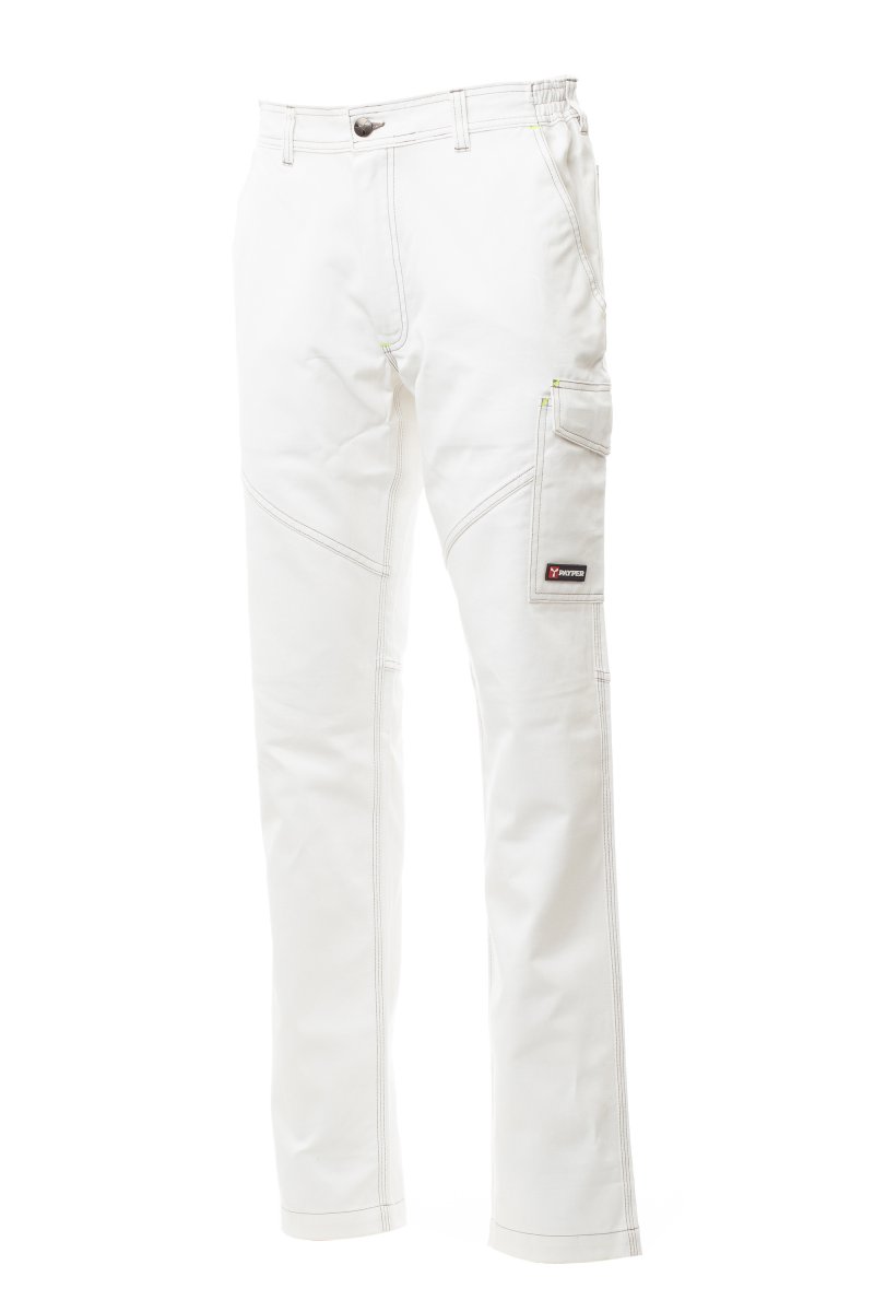 NADRÁGOK_CARGO_Uniszex négy évszakos nadrág rugalmas oldalrésszel és derékövvezetőkkel. Cipzáras rögzítés műanyag gombbal, két klasszikus kialakítású zseb elöl, egy LOCK SYSTEM oldalzseb, zseb mérőszalag számára, két hátsó zseb, egy nyitott és egy hajtókás, tépőzáras zseb, kontrasztos betétek és varrások, fényvisszaverő sávok a hátsó zseben, tripla varrat. A fehér színű modell esetében farmergomb. Kontrasztos színű elemek és varrat, fluoreszkáló sárga reteszöltéssel az egyszínű tengerészkék szín esetében.