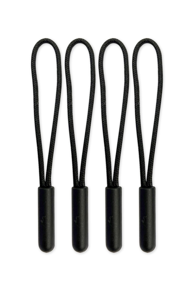KIEGÉSZÍTŐK_TIRETTI ZIP_Fekete zsinóros és fekete műanyag véggel ellátott cipzár húzóka, 500 darabos kiszerelésben.